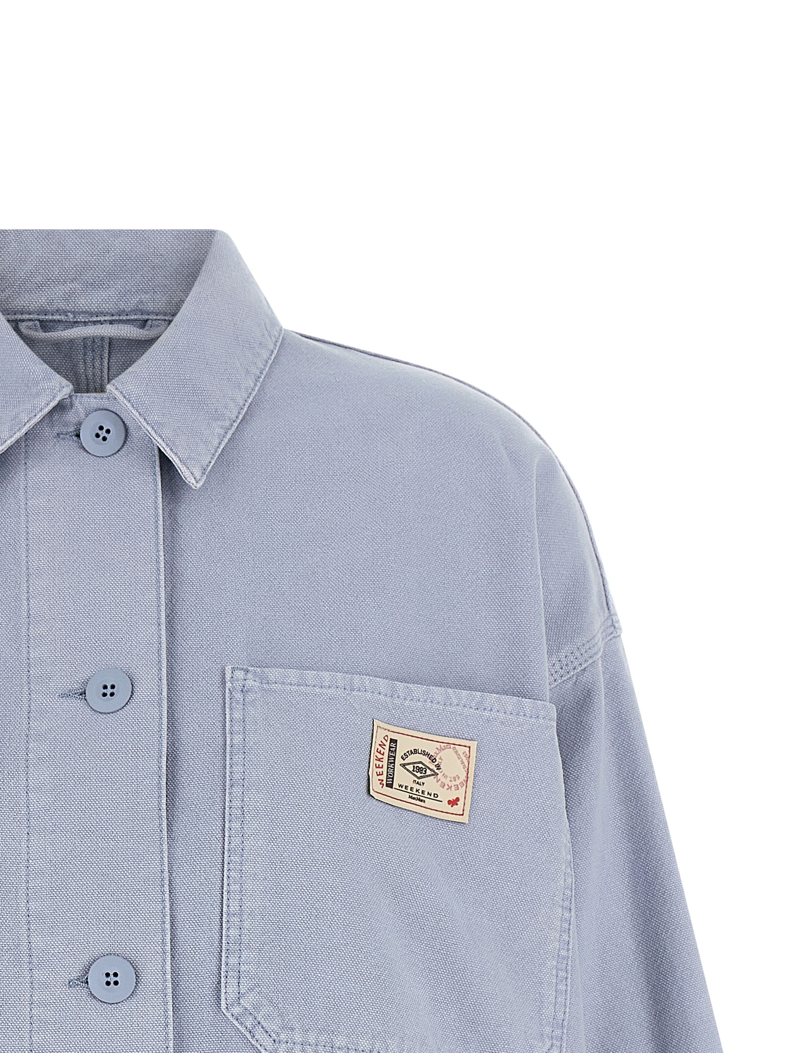 ‘WkdAlbum’ jacket in pure cotton canvas garment-dyed, workwear model, logo patch and front button closure, shirt collar, long sleeves with dropped shoulders, unlined.
