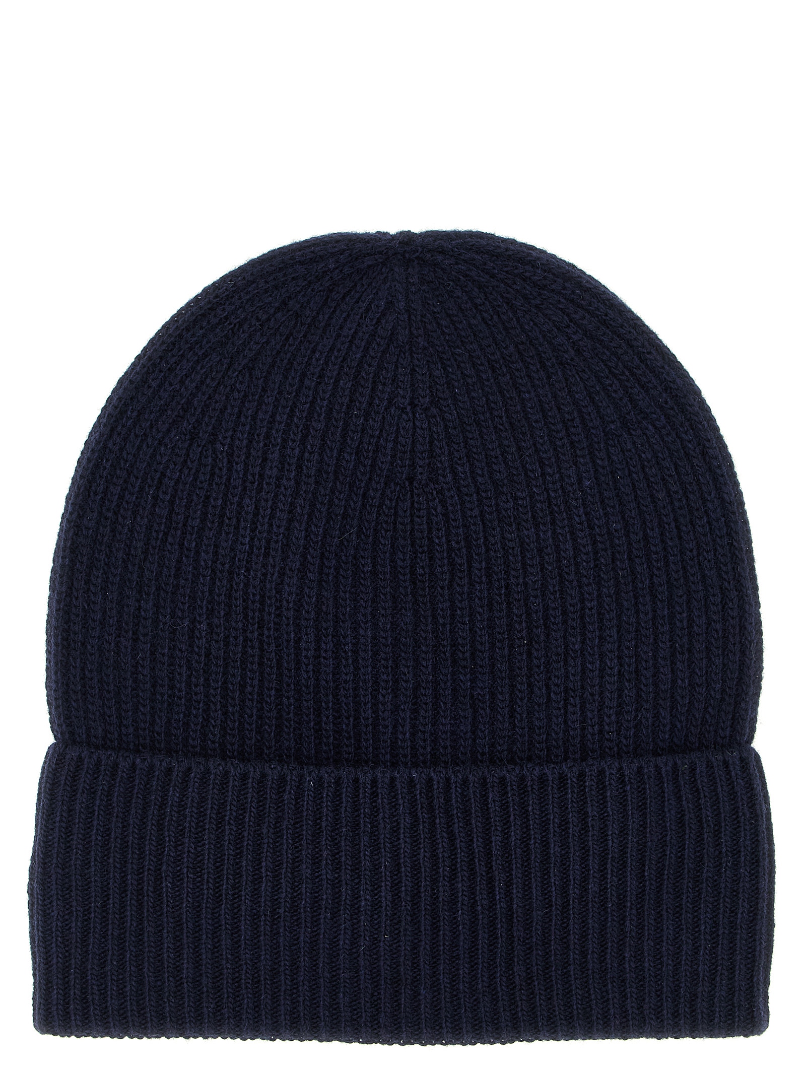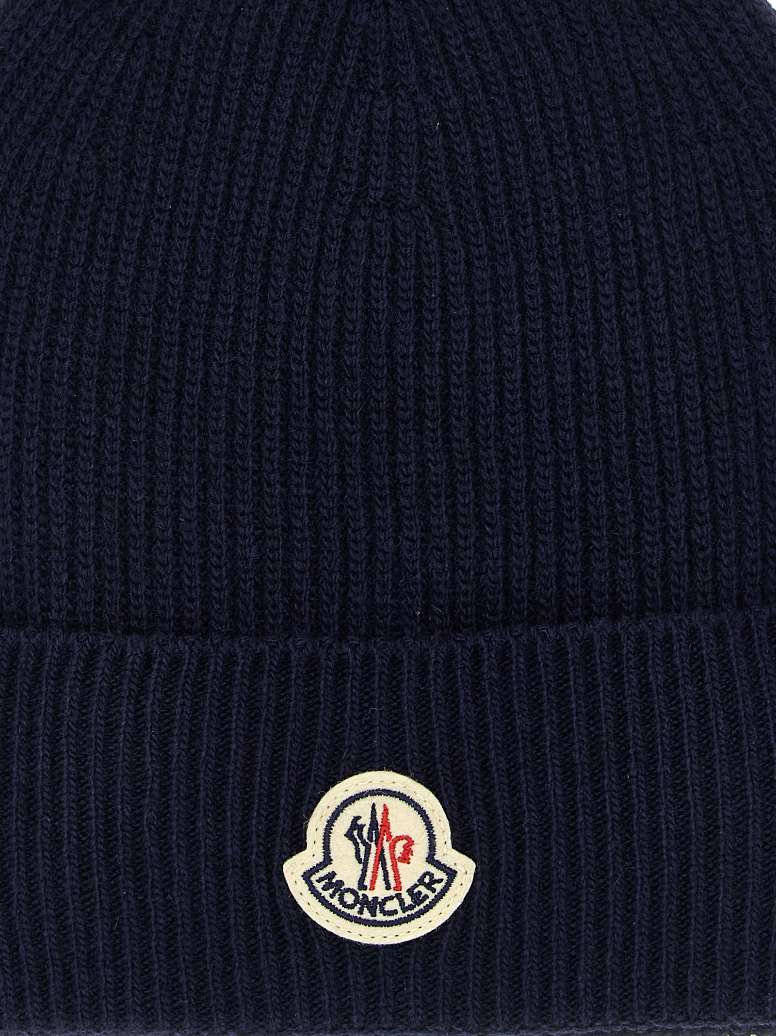 Medium weight wool and cashmere beanie with brioche stitch processing and 7 fineness, turn-up with front felt logo patch.