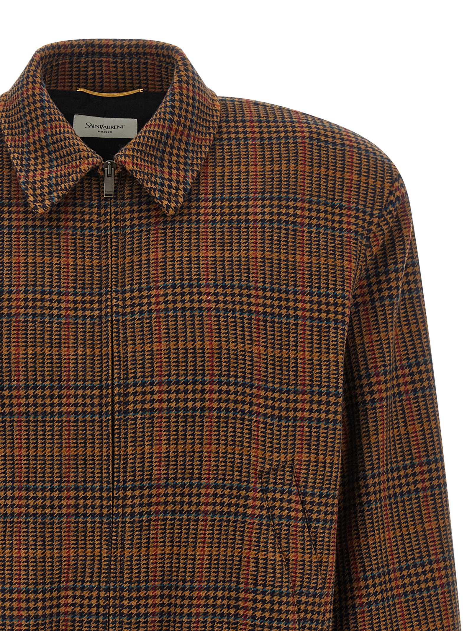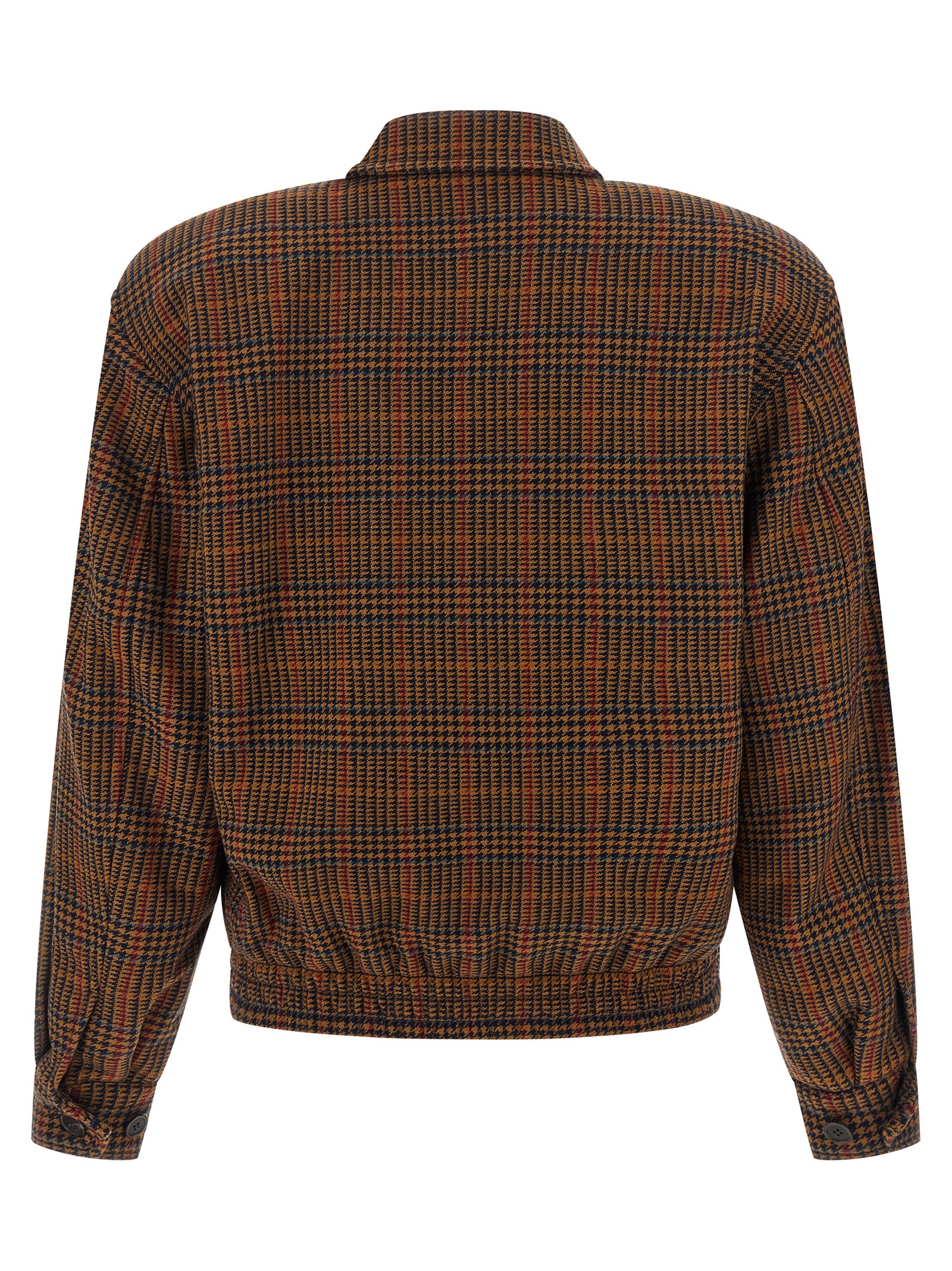 Wool bomber jacket, shirt collar, padded shoulders, zip closure, elastic hem, long sleeves with adjustable cuffs with button.