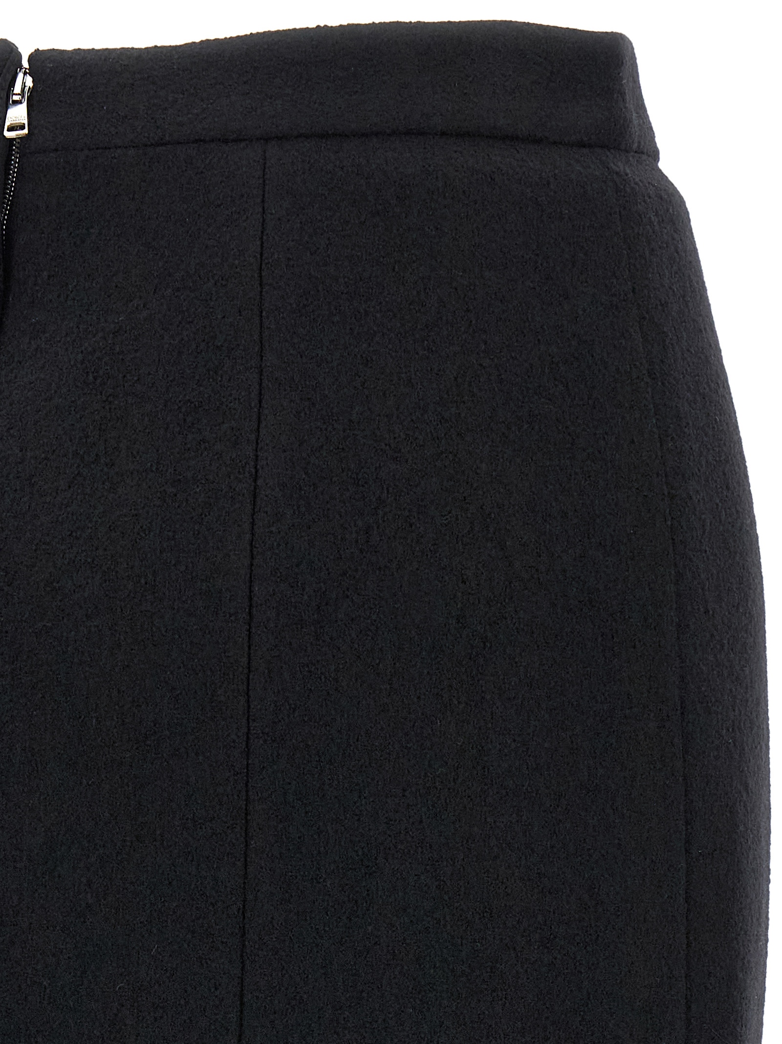 Midi skirt in wool, sheath skirt, high waist, pleats, zip closure and back split, silk lining.