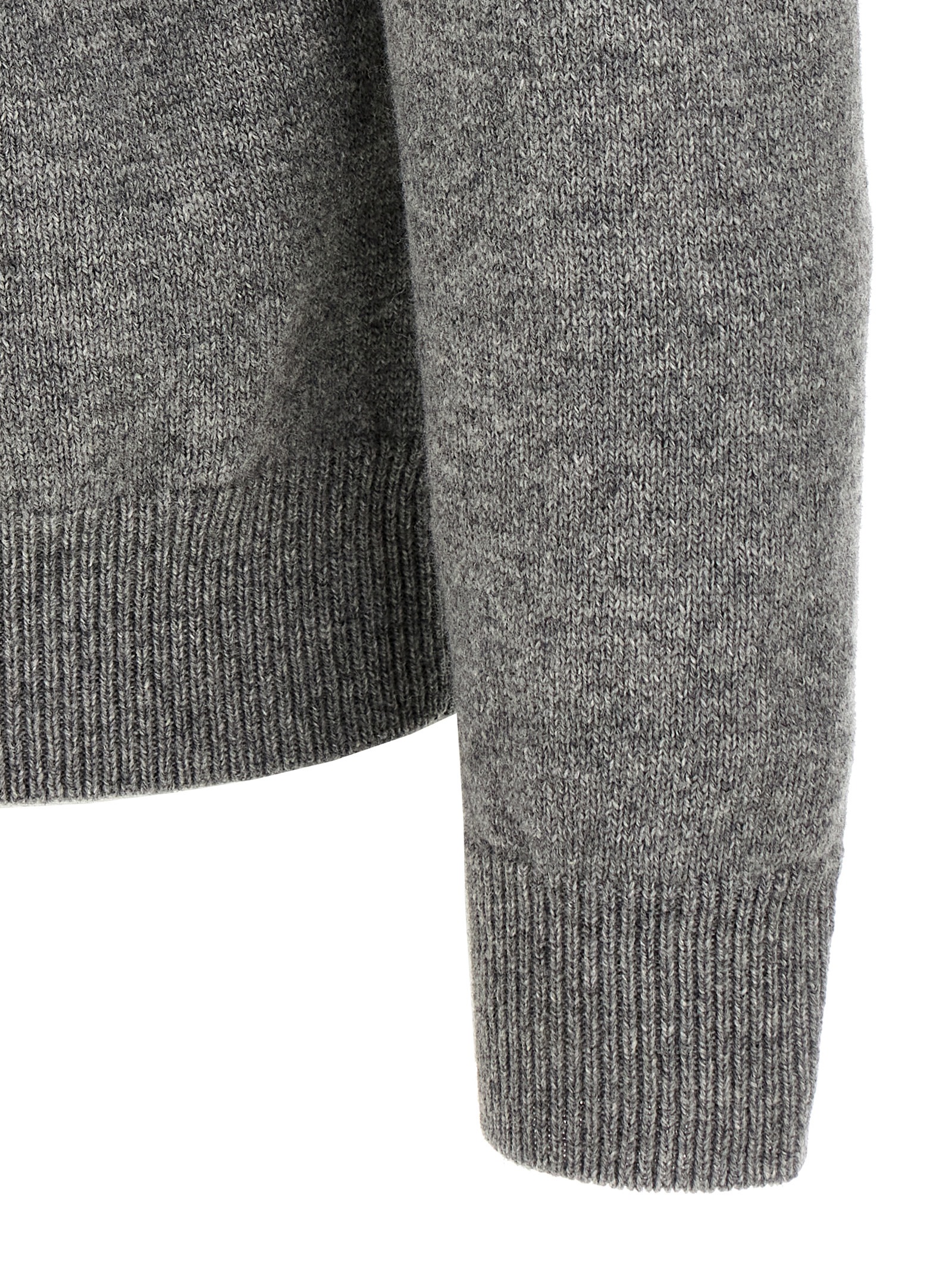 Virgin wool crewneck sweater with long cuffed sleeves.