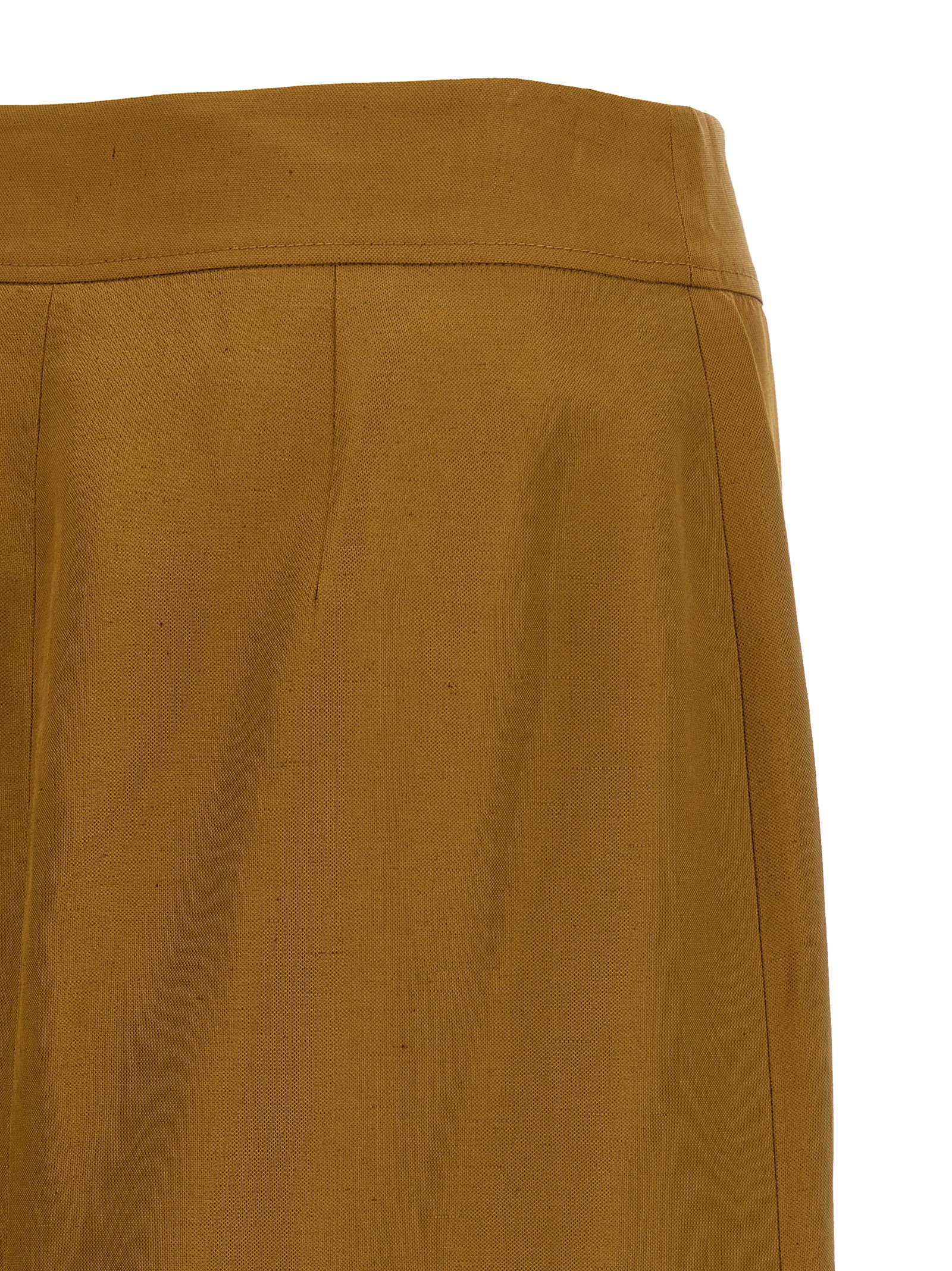 Midi skirt in viscose and linen blend, wallet style with asymmetric closure and front hook.