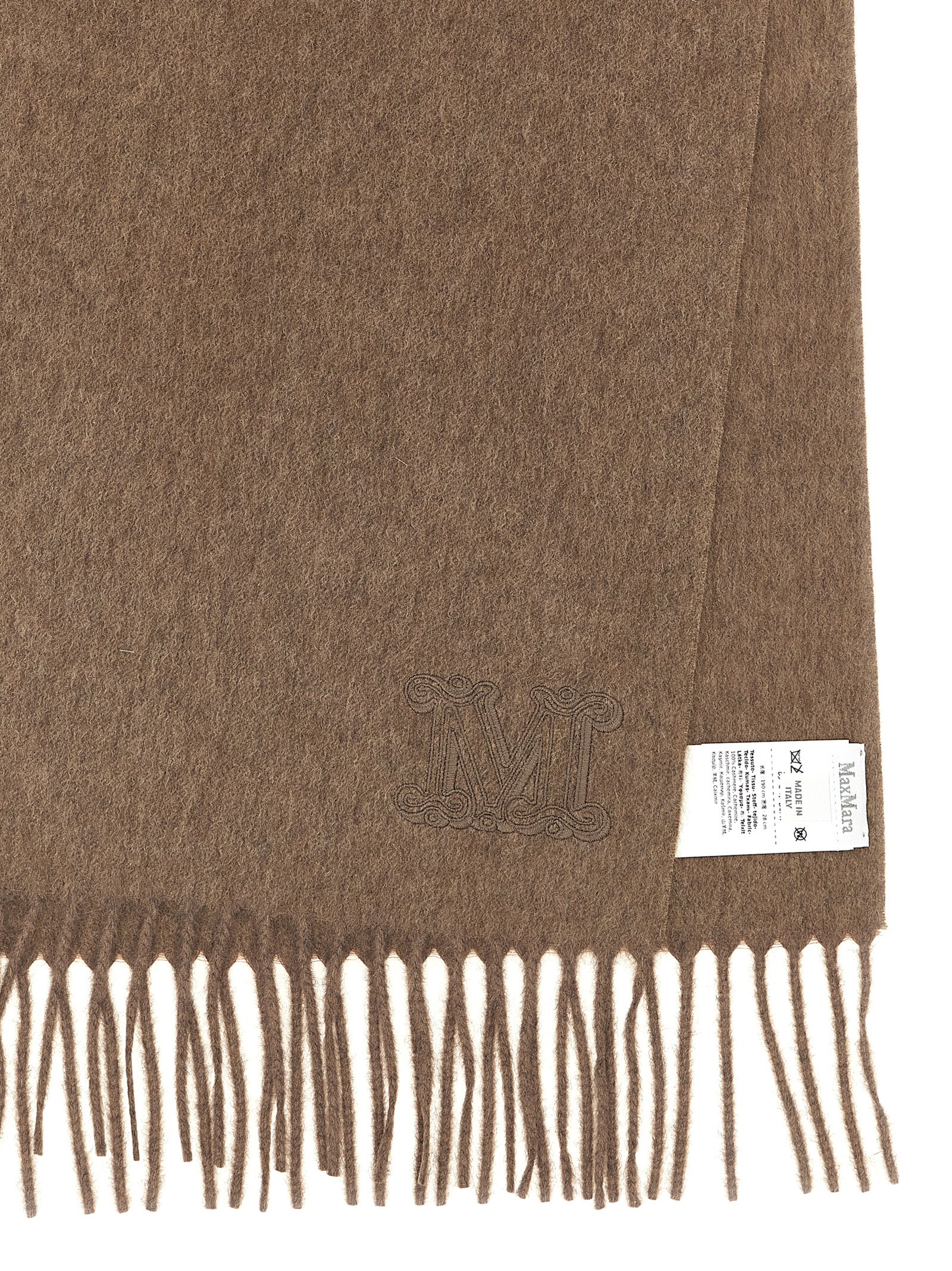 ‘Wsdalia’ cashmere stole, tone-on-tone Monogram M embroidery, fringed ends.