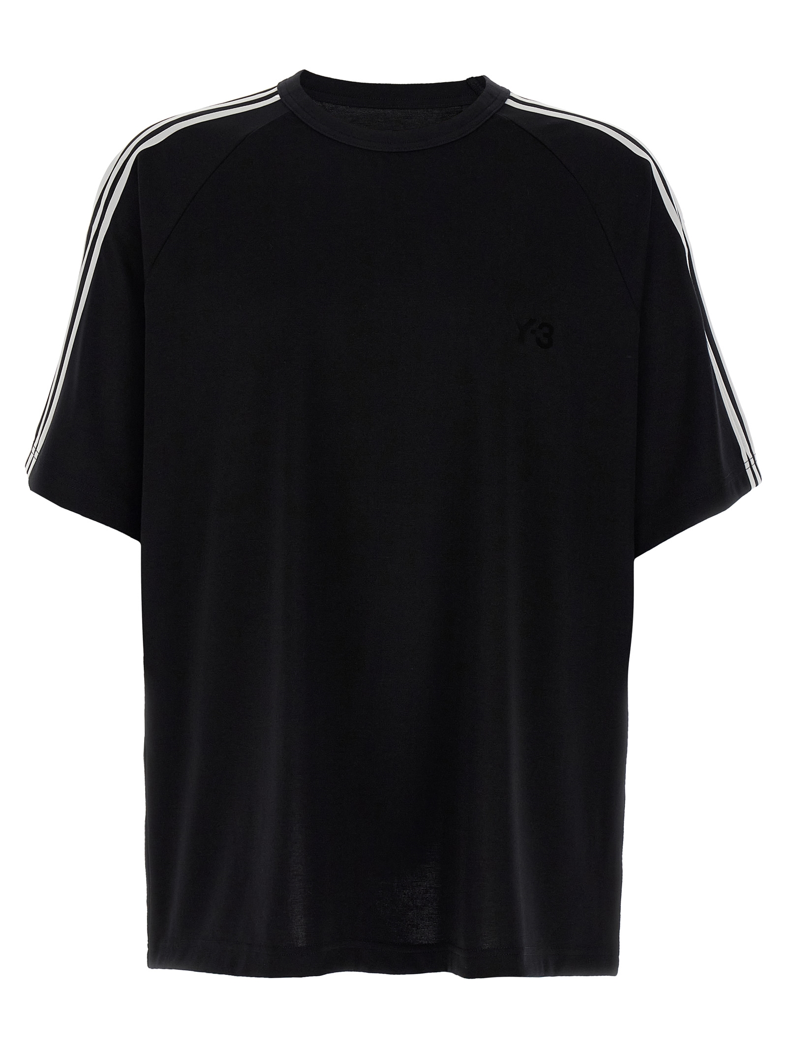 ‘Y-3 3 strisce’ lyocell, nylon and sheep wool blend t-shirt with contrast details, crew neck, short sleeves and dropped shoulders.