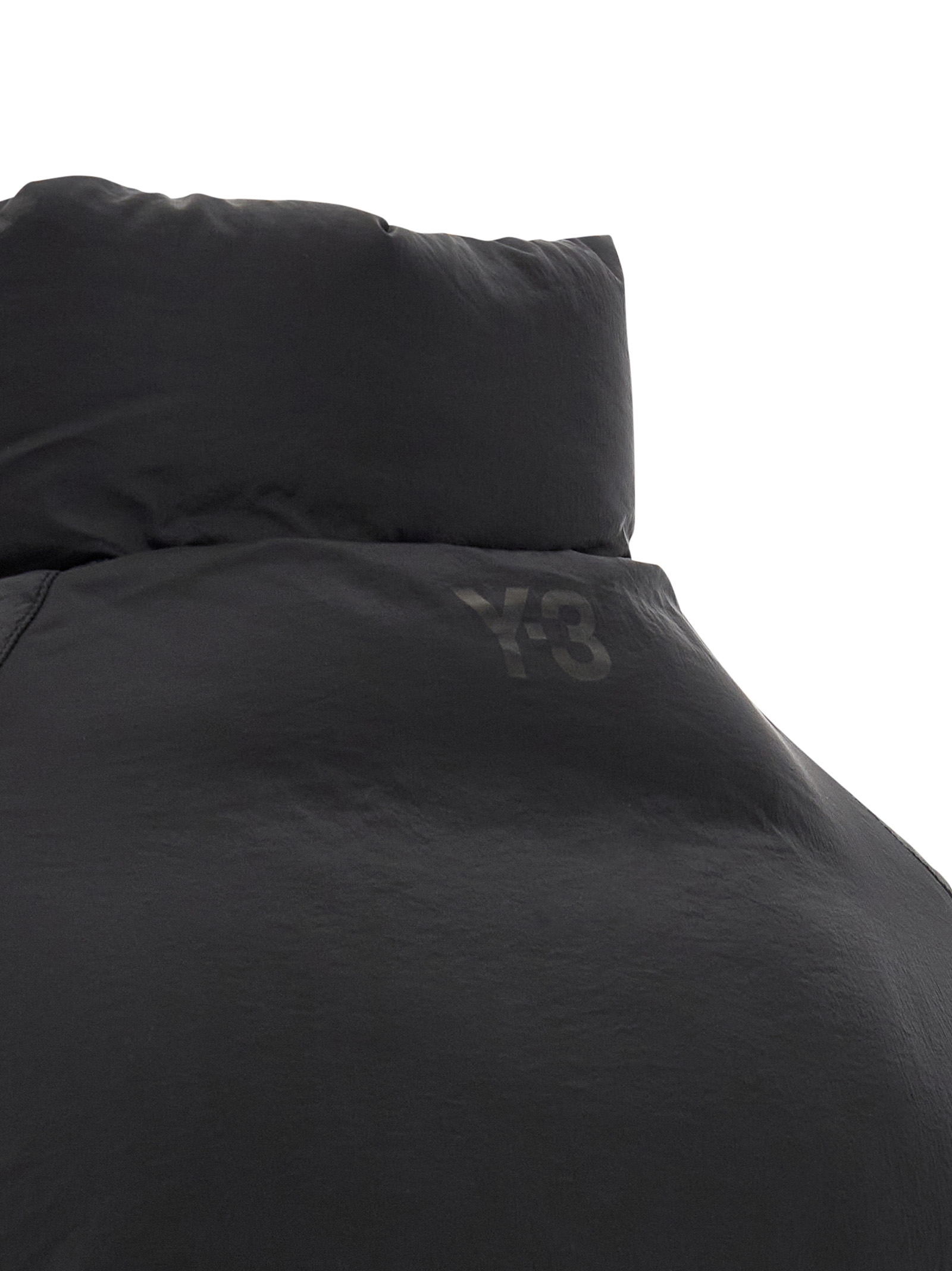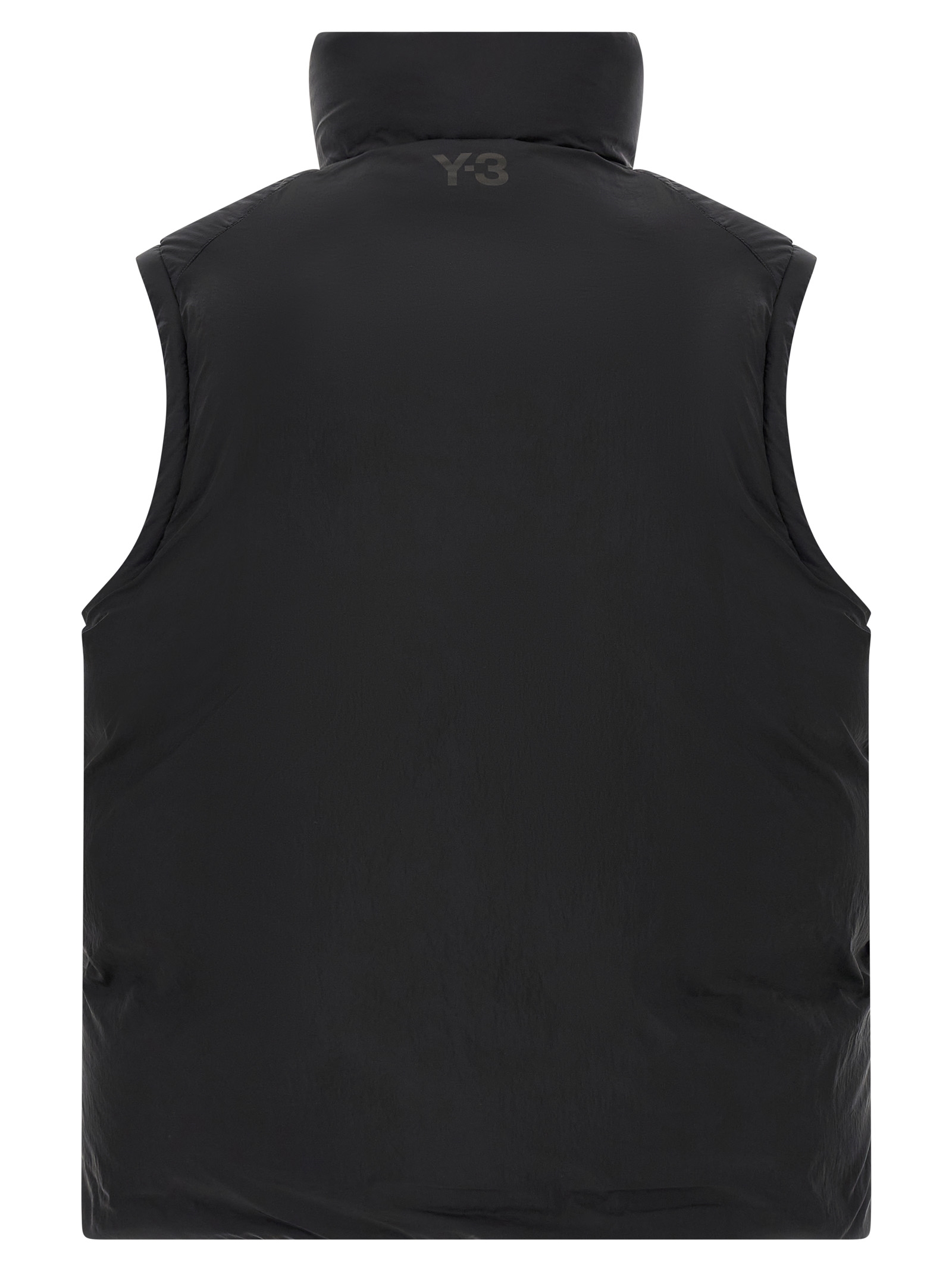 ‘Y-3 Puffer’ smooth nylon vest padded with duck down and PrimaLoft®, standing collar, tonal oil printed logo on the back, front zip closure, pockets, drawstring at the hem.