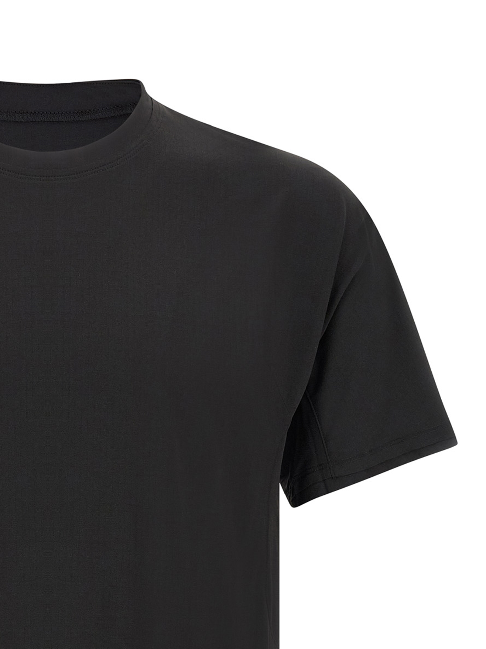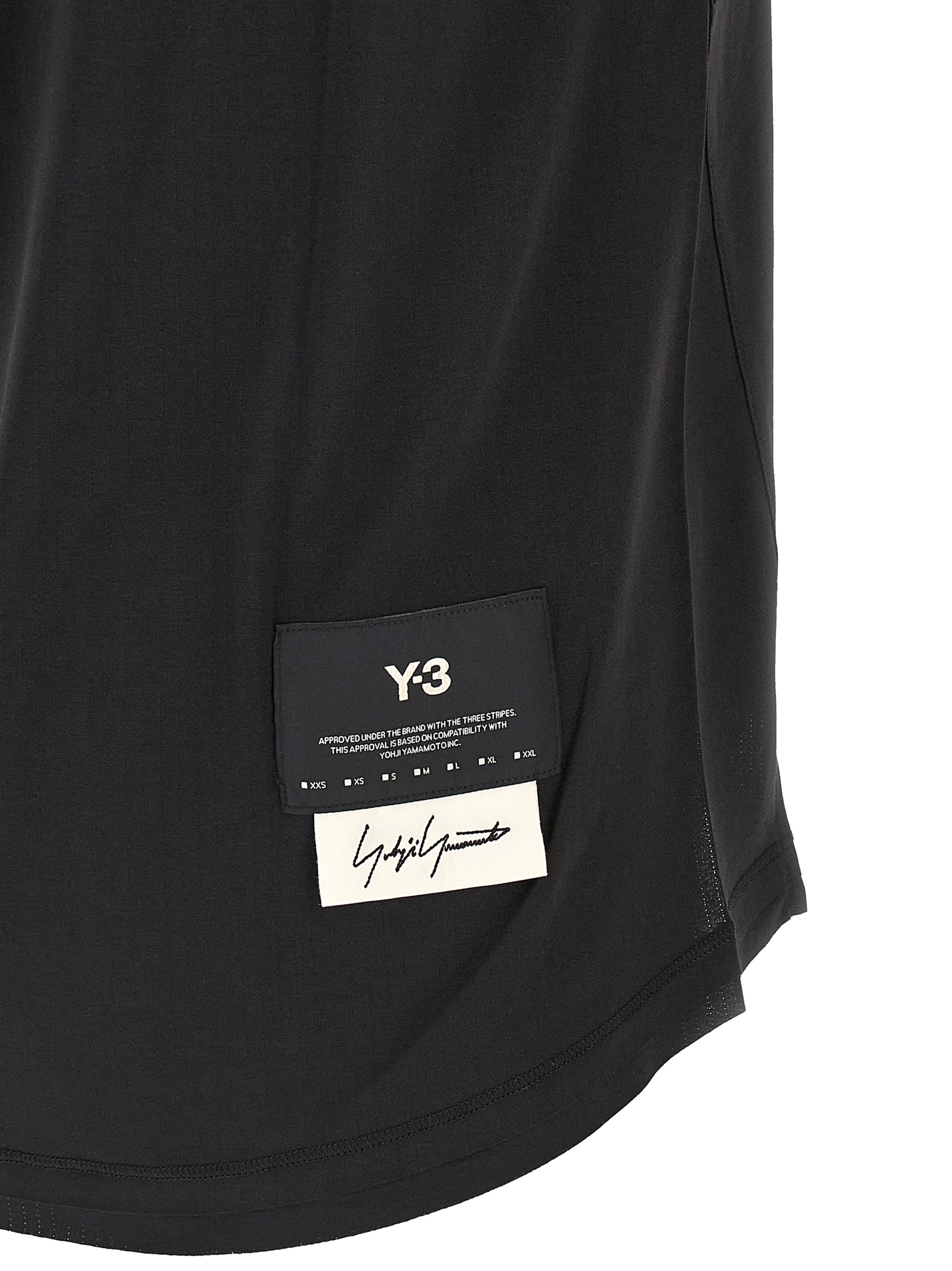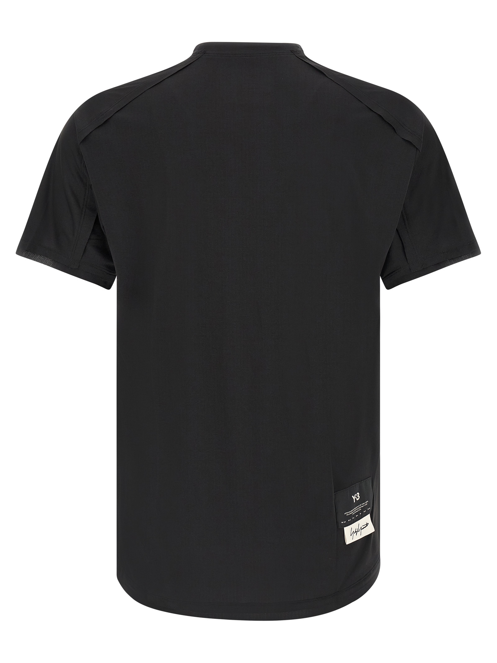 ‘Y-3 Running’ t-shirt in lightweight and elastic technical fabric with hydrophilic finish and mesh inserts, back logo patch, crew neck, short sleeves, asymmetrical hem with side slits.