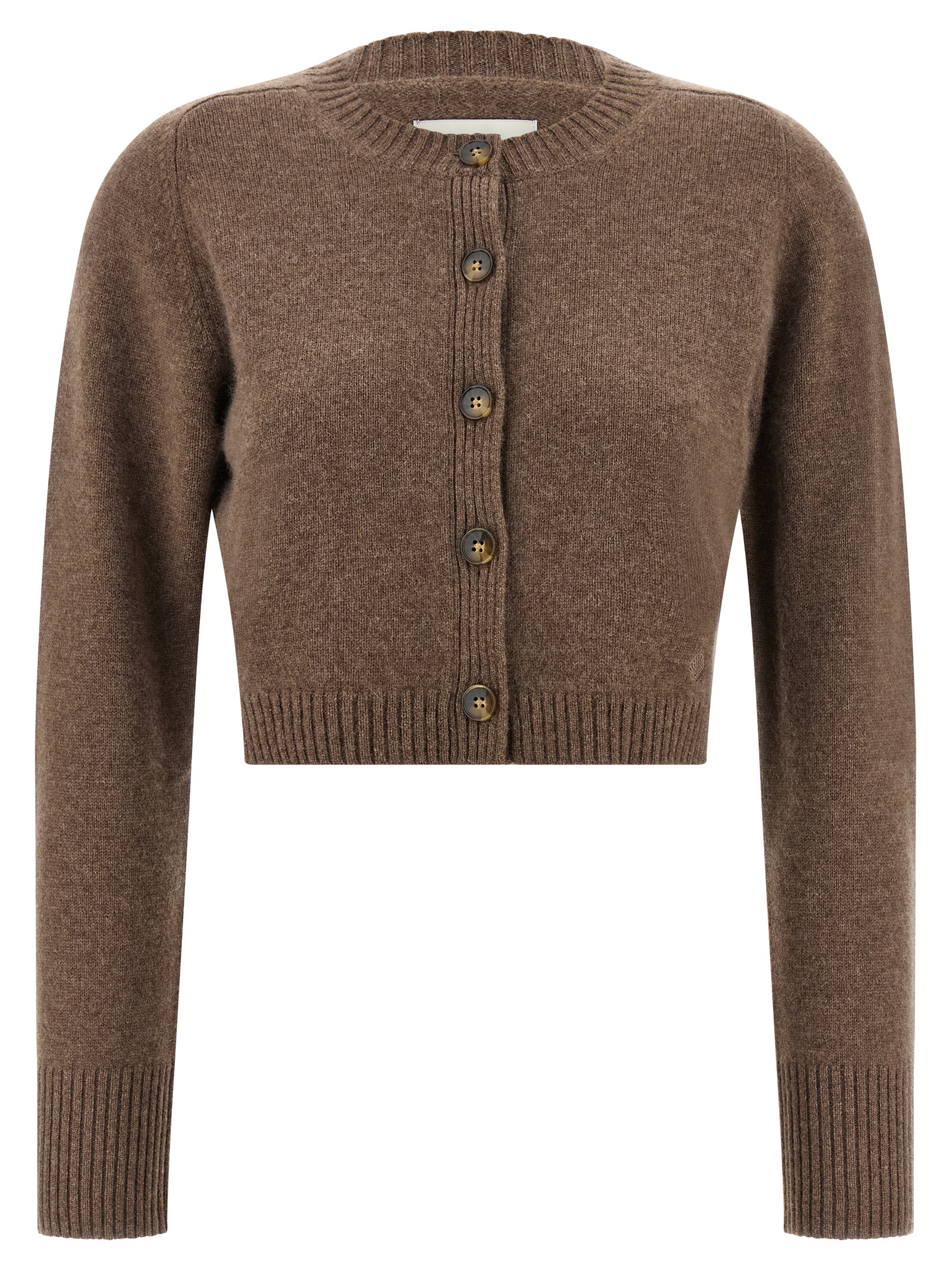 ‘Zephir Lds’ cashmere cardigan, crop model, with tone-on-tone logo embroidery and front button closure, crew neck, long raglan sleeves with cuffs.